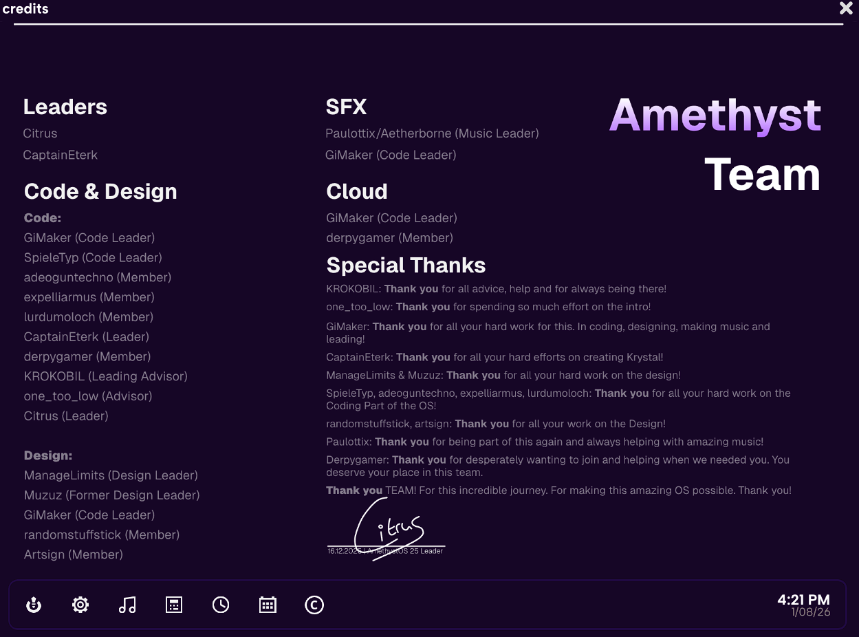 AmethystOS - developed by a highly motivated team of great people, working together to create an unique OS in scratch.